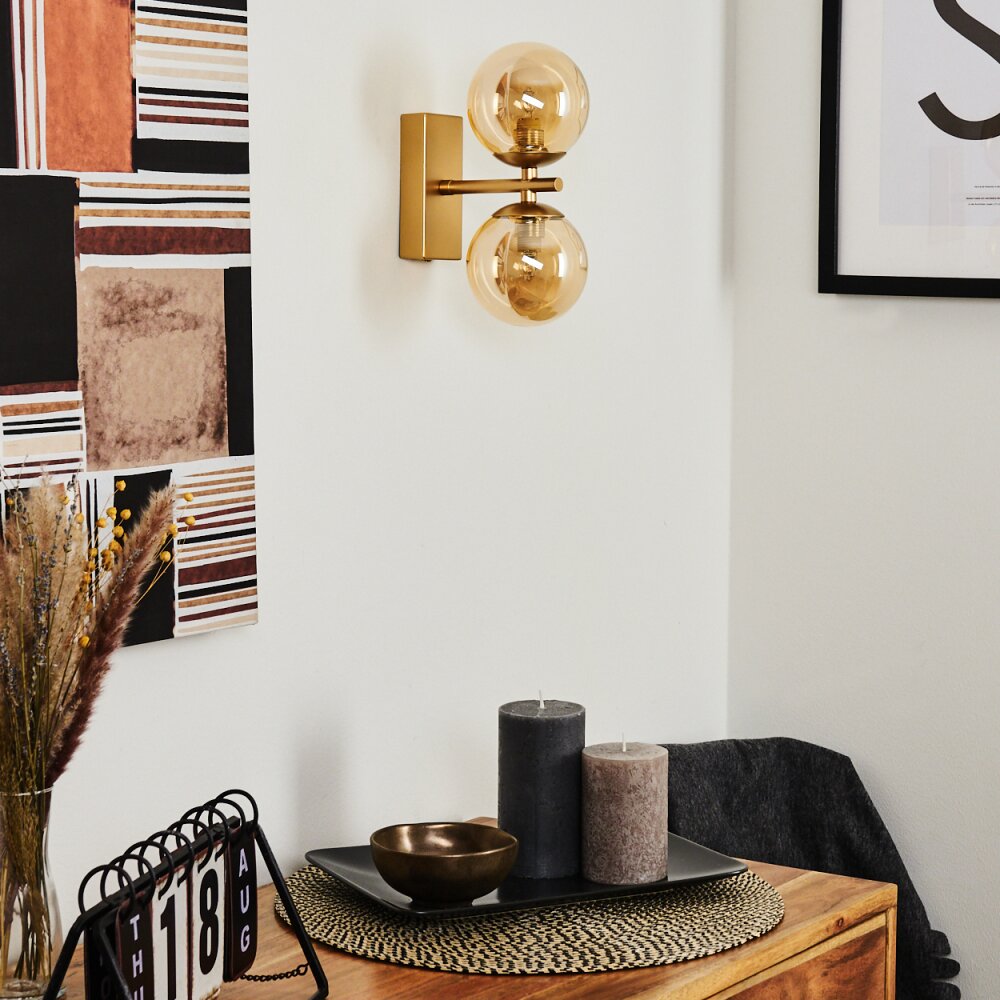 Chehalis Wall Light - glass 10 cm, 12 cm black, 2-light sources