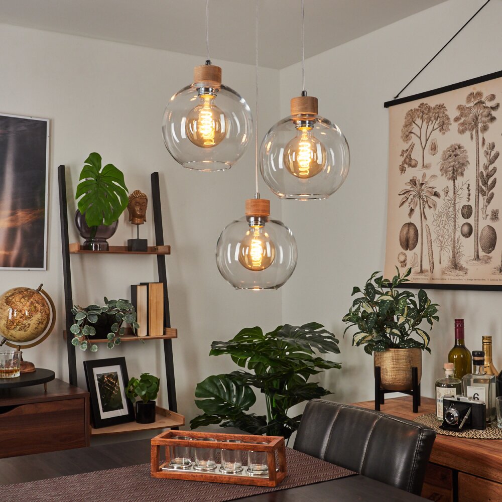 Vouhet Pendant Light brown, Wood like finish, black, 6-light sources
