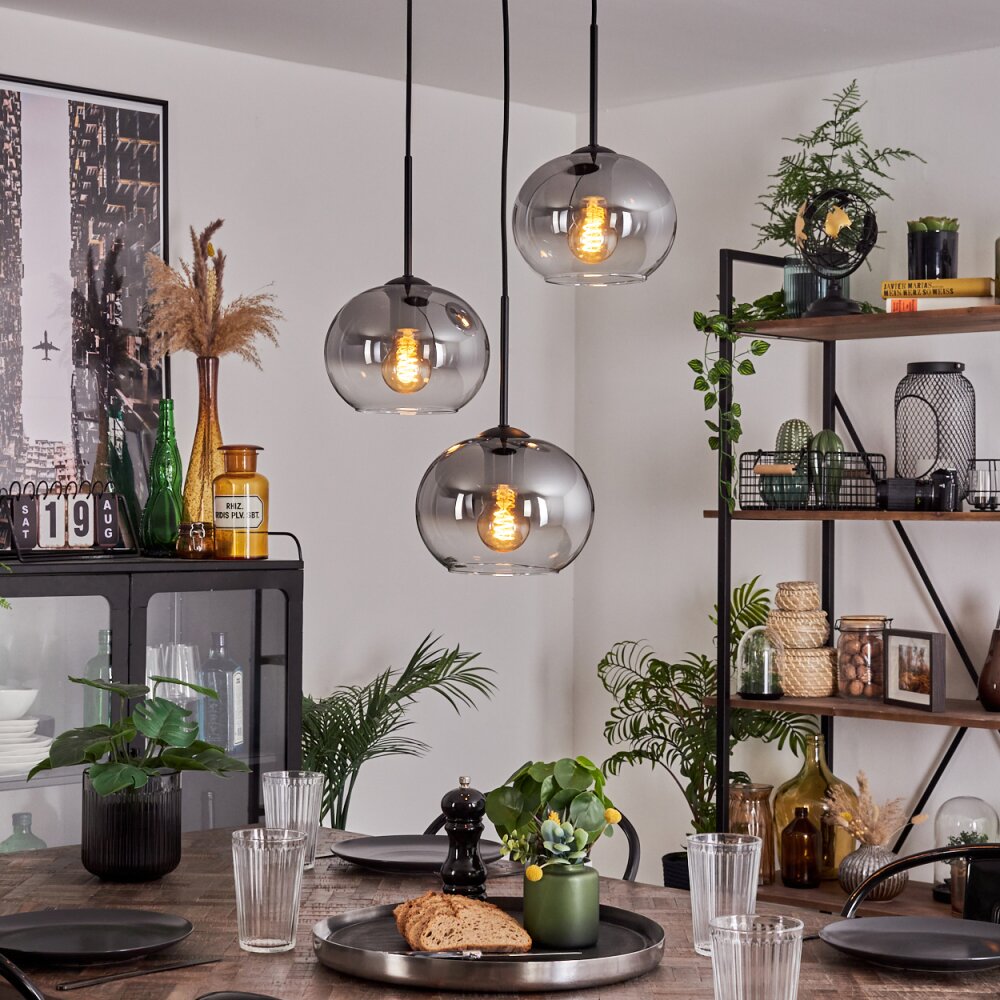 APEDO Pendant Light - glass clear, Smoke-coloured, 3-light sources
