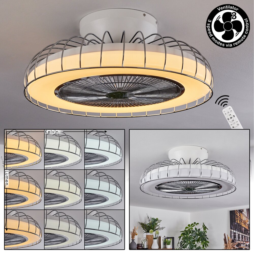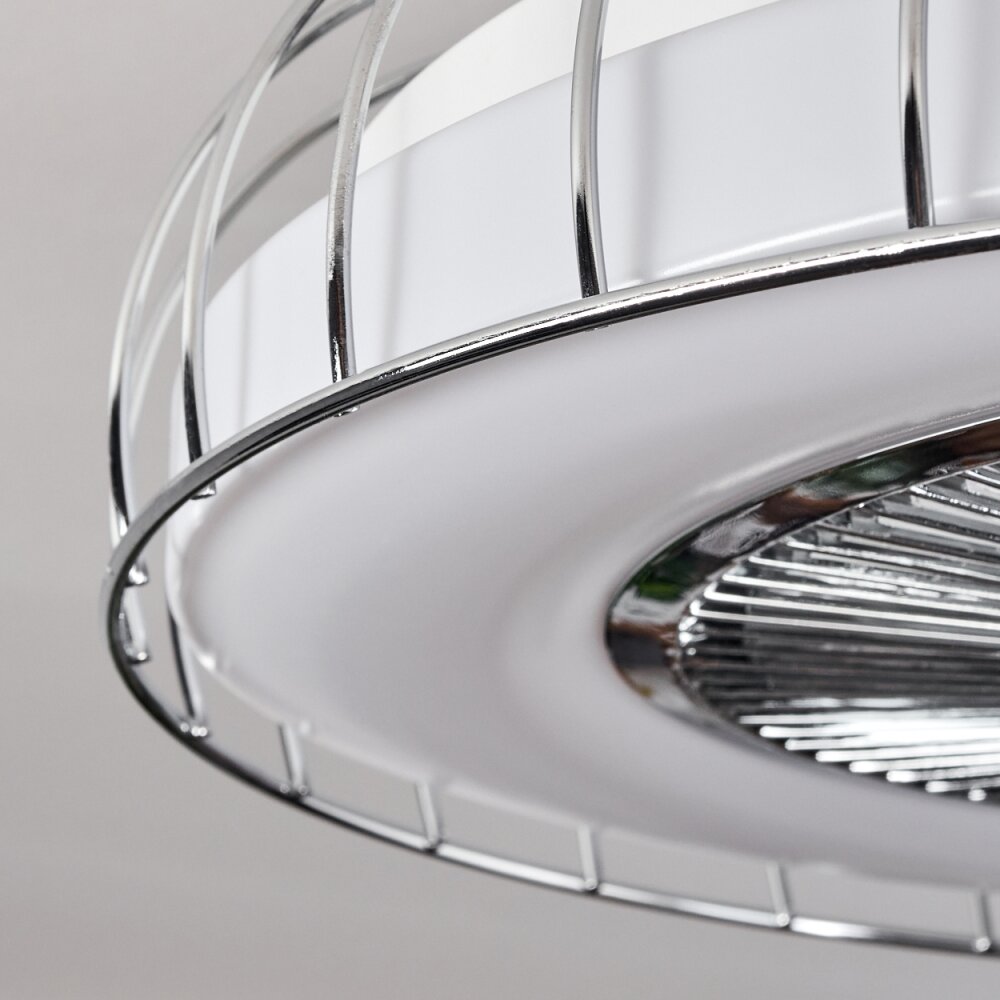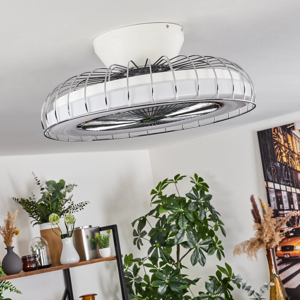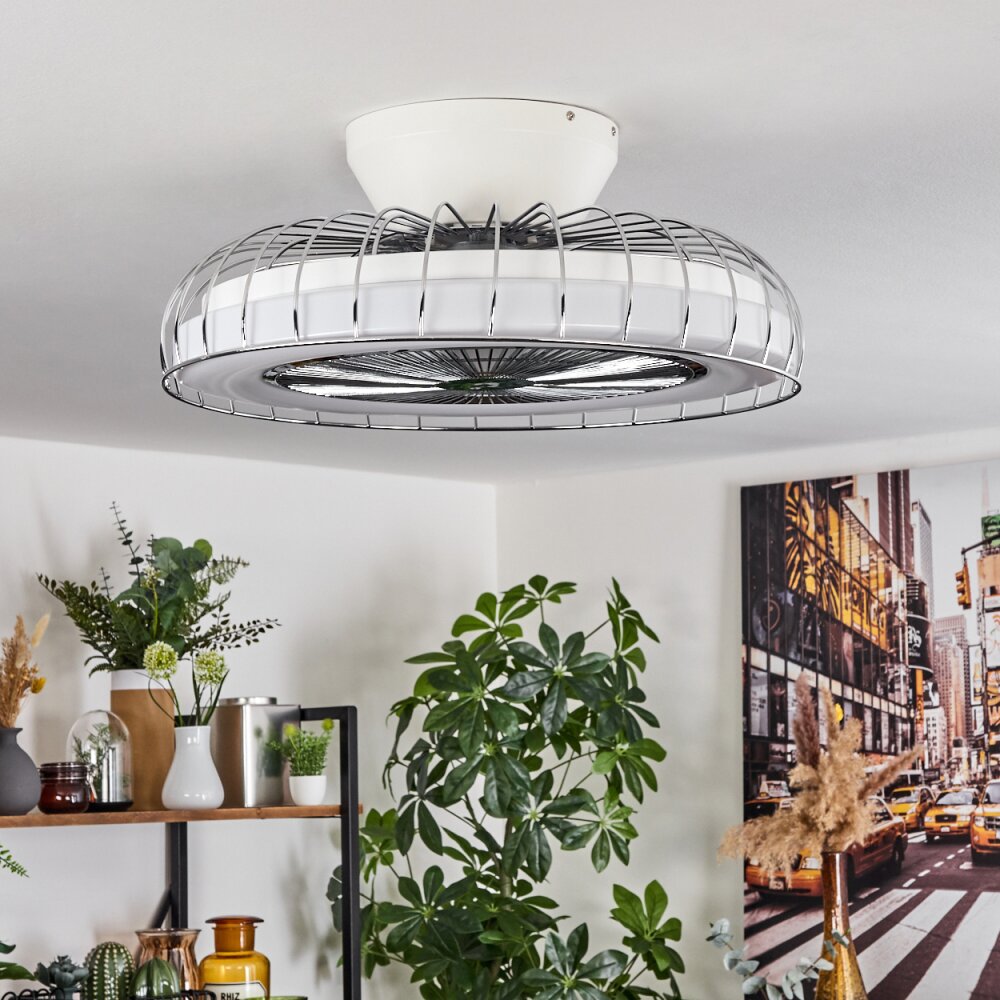 PIACENZA ceiling fan LED chrome, white, 1-light source, Remote control