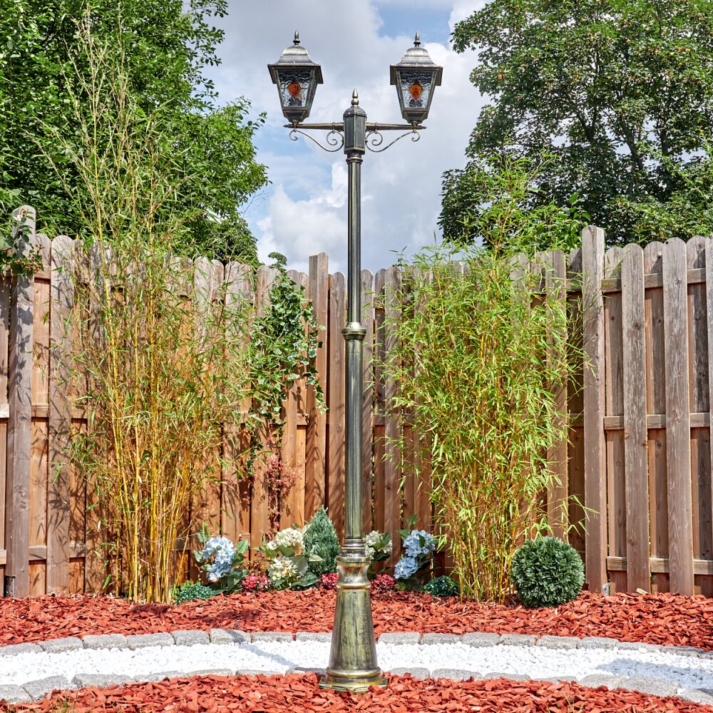 Chatelain outdoor light, lamp post, path light gold, black, 2-light sources