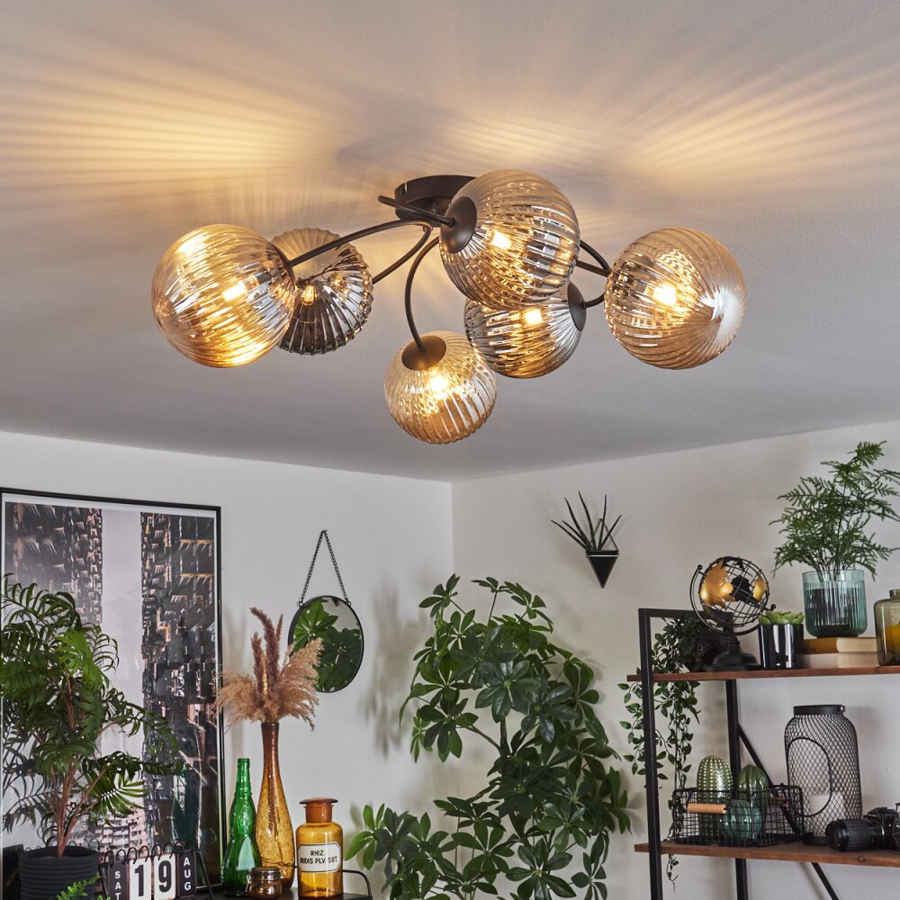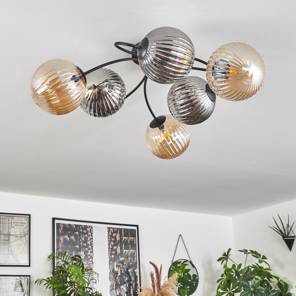 CHEHALIS Ceiling Light Amber, Smoke-coloured, 6-light sources