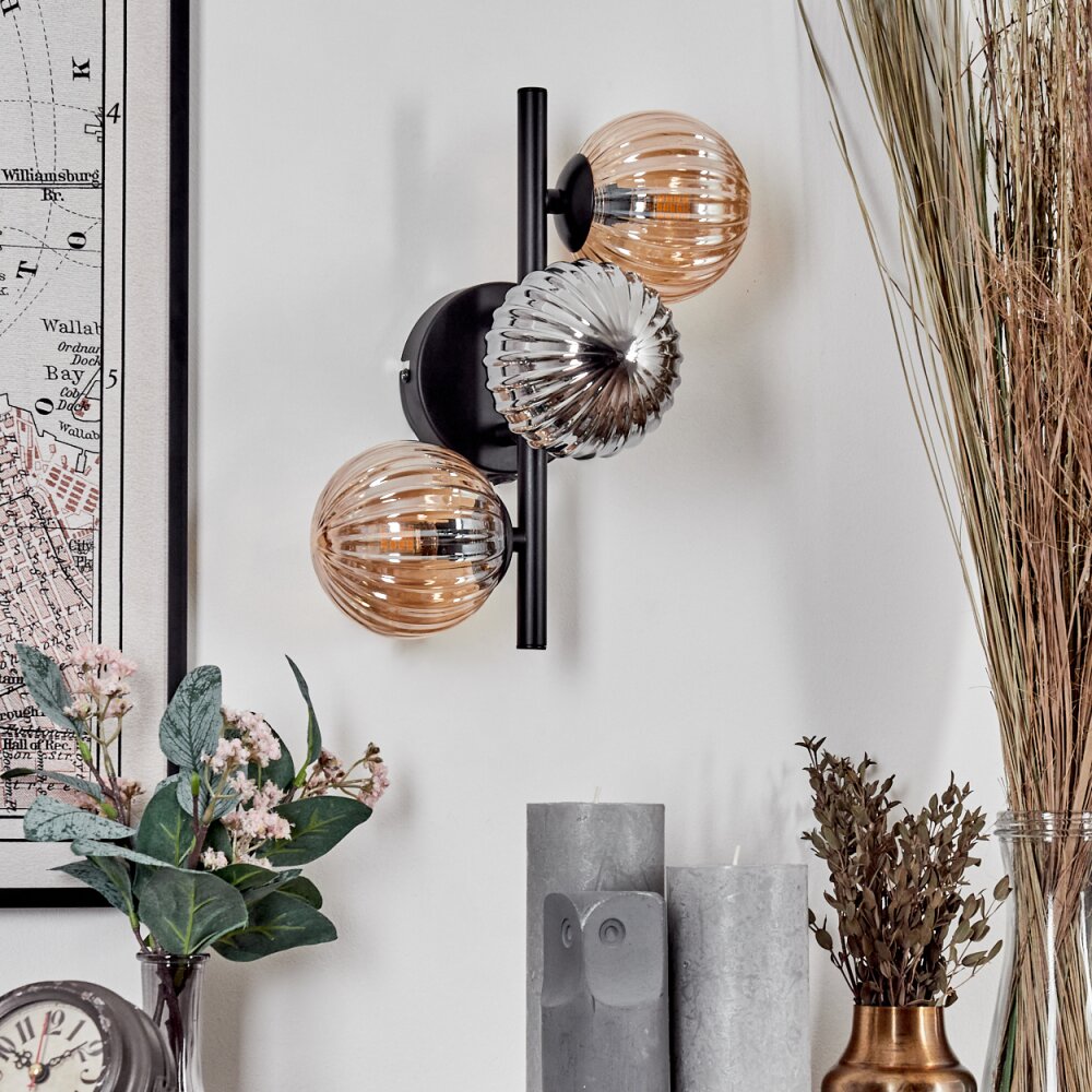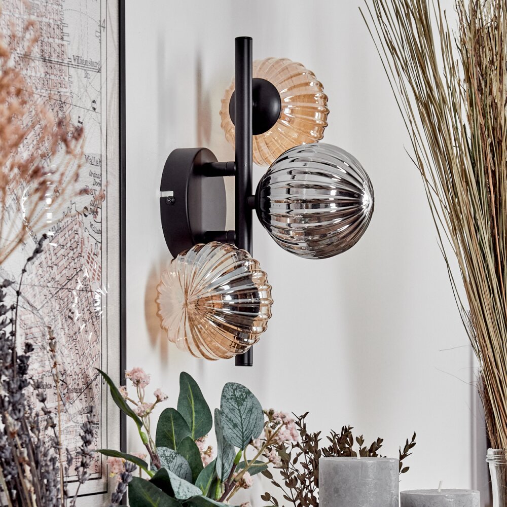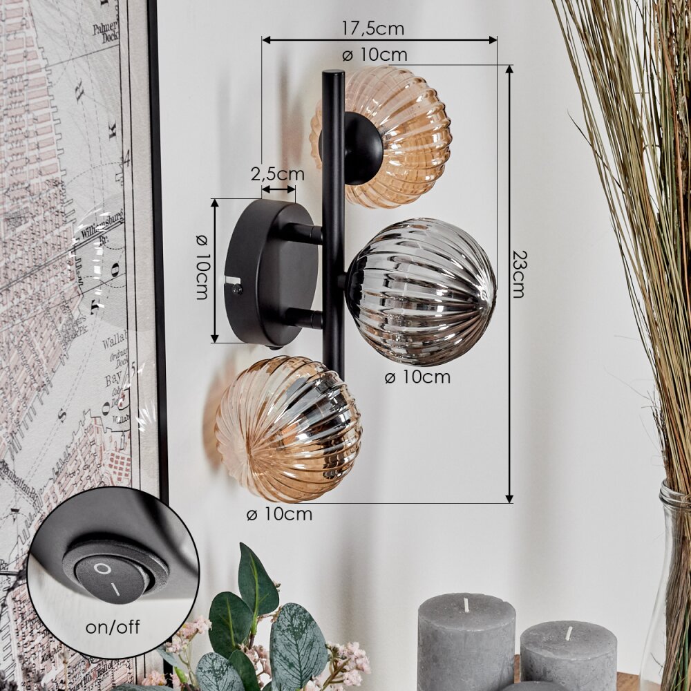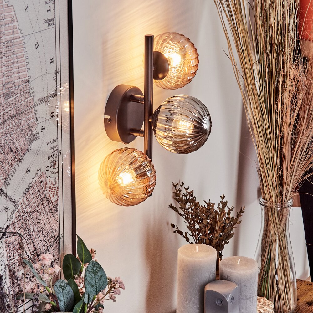 Chehalis Wall Light - glass 10 cm Amber, Smoke-coloured, 3-light sources