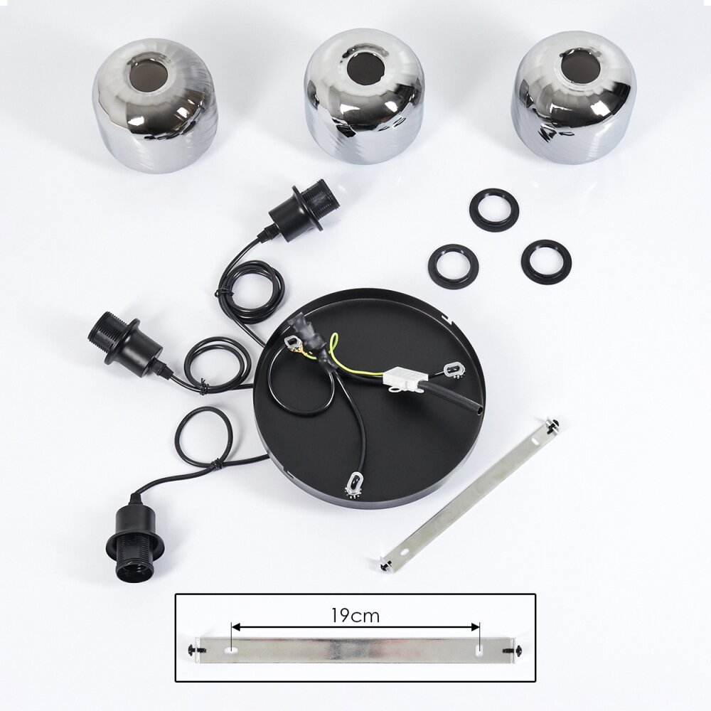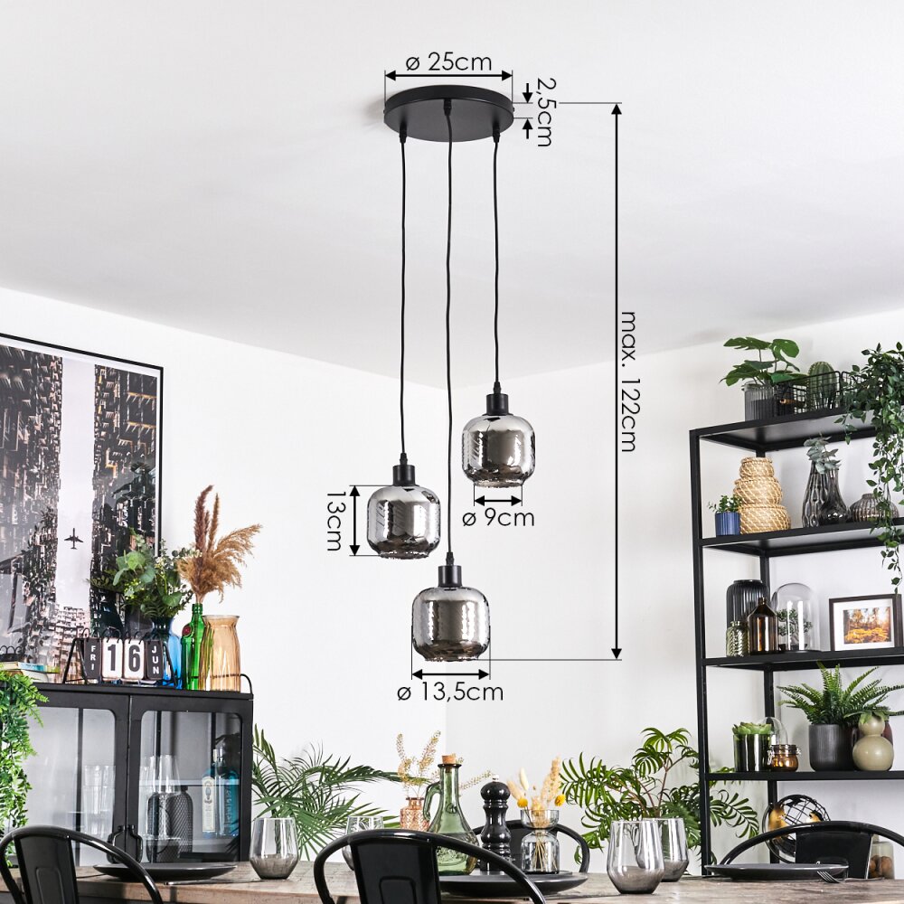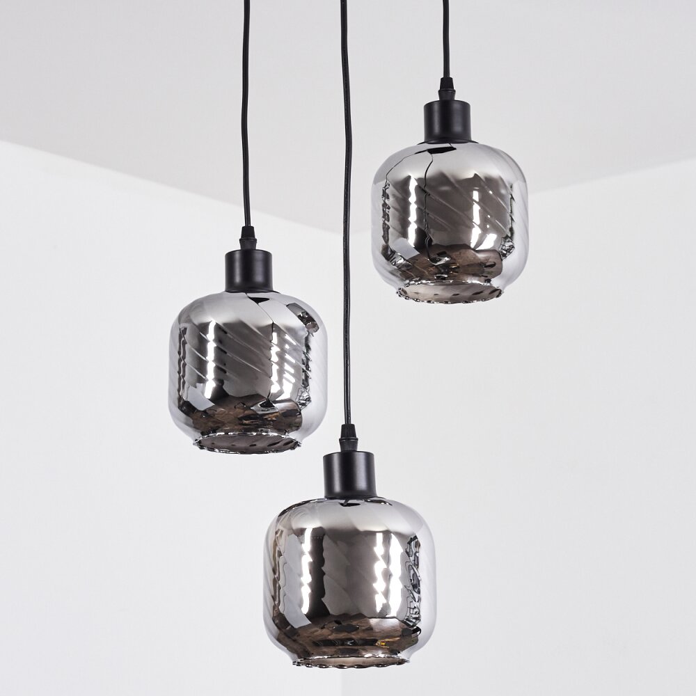 Fanhaes hanging light, pendant light, Cluster pendant lamp chrome, Smoke-coloured, 3-light sources
