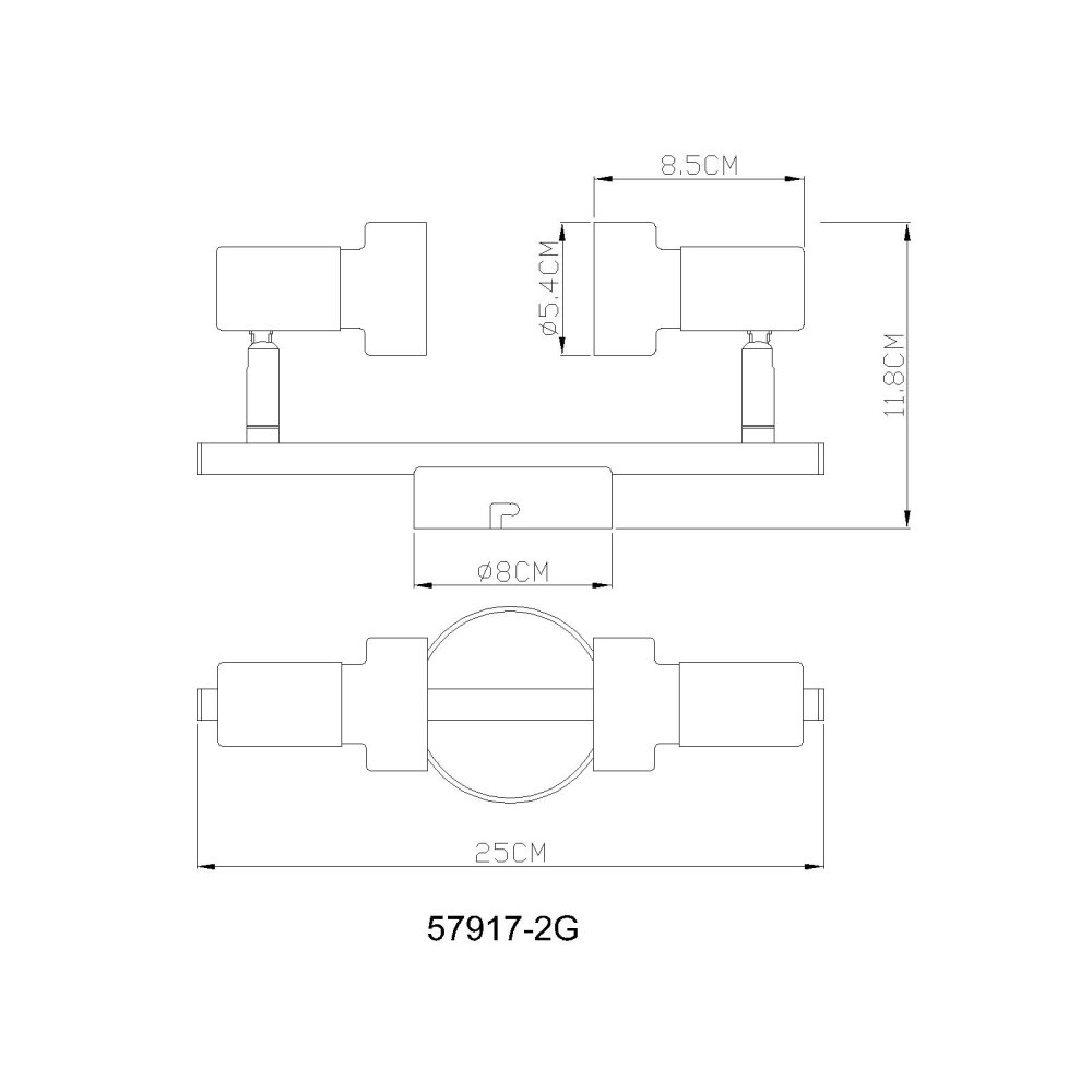 Globo lighting Mason ceiling light, ceiling spotlight, wall light, wall spotlight chrome, black, 2-light sources