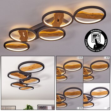 SALMI Ceiling Light LED brown, Wood like finish, black, 1-light source, Remote control