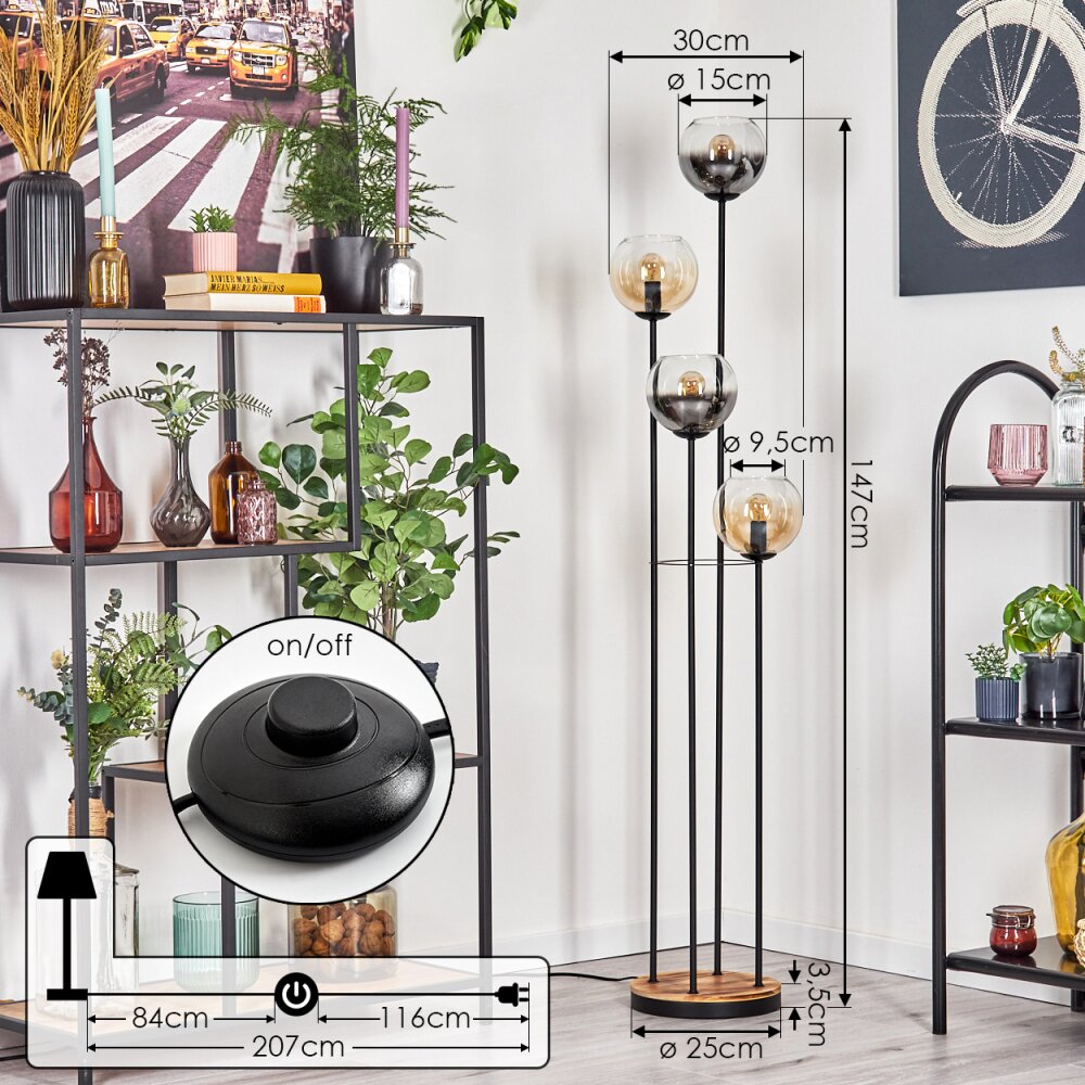 Koyoto floor lamp 30 cm Light wood, black, 4-light sources