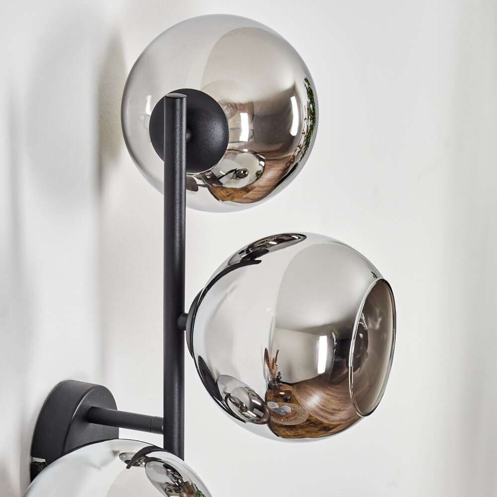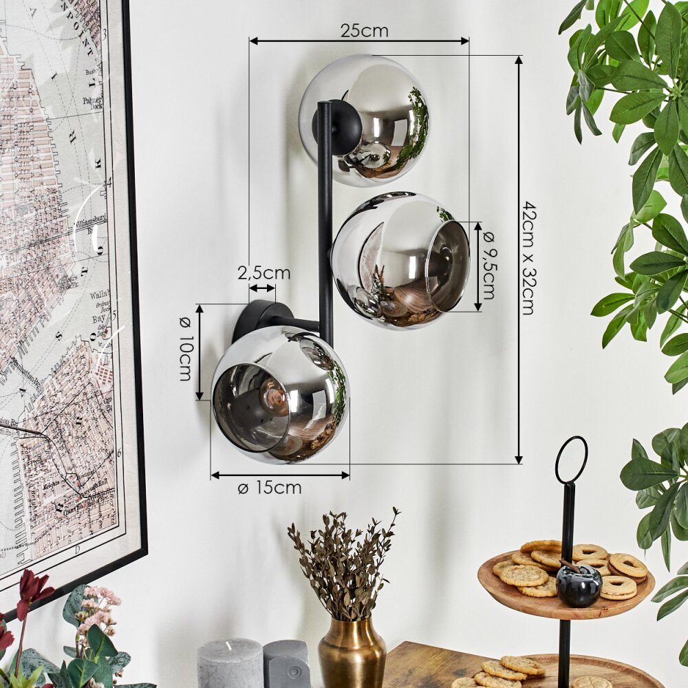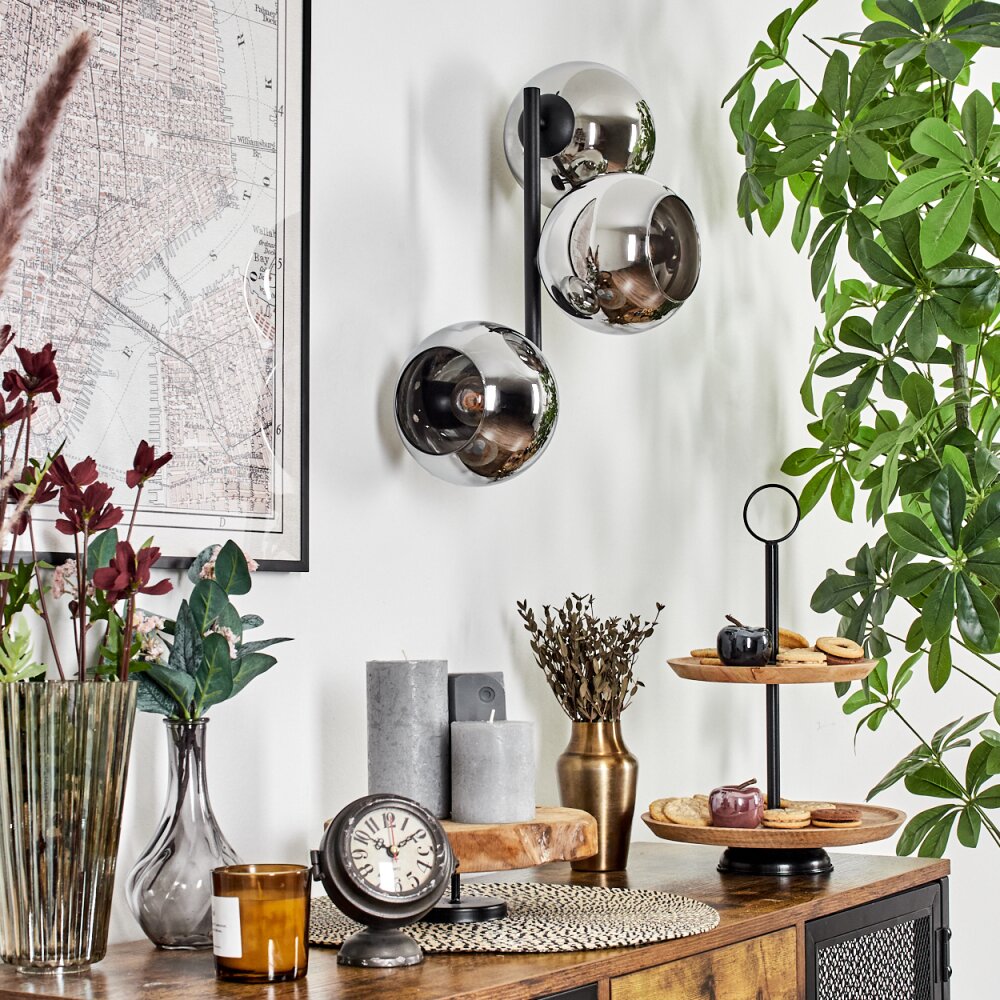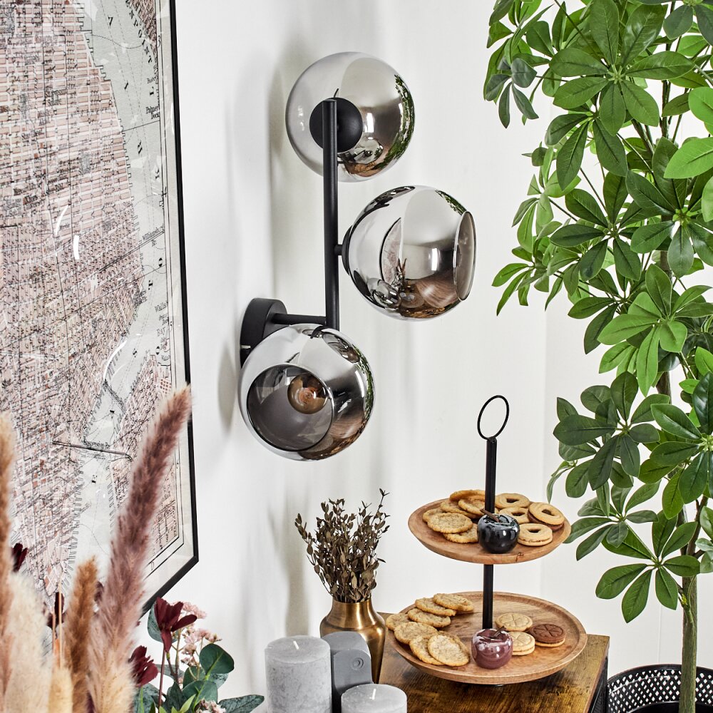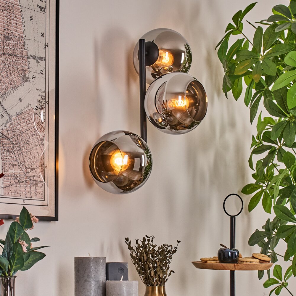 Koyoto globe light, wall light chrome, Smoke-coloured, 3-light sources