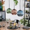 Koyoto hanging light, globe light, pendant light blue, green, coppery, 3-light sources