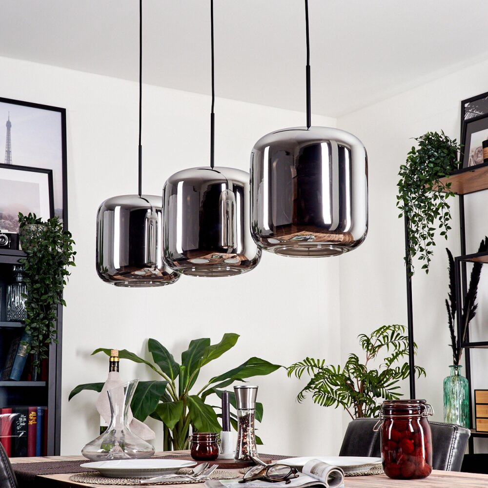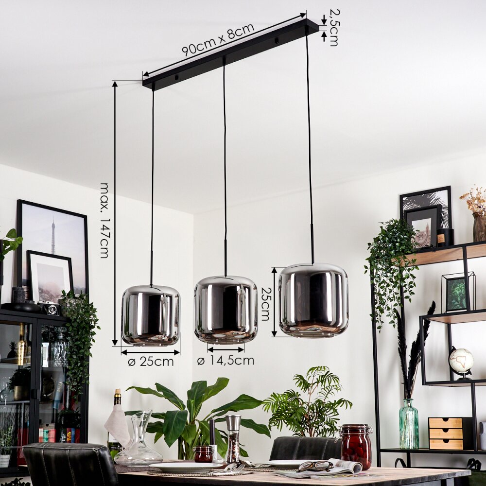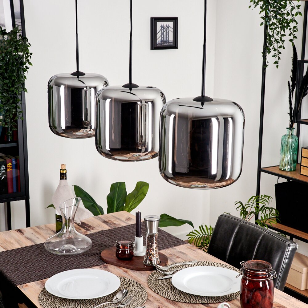 LAUDEN Pendant Light - glass chrome, Smoke-coloured, 3-light sources