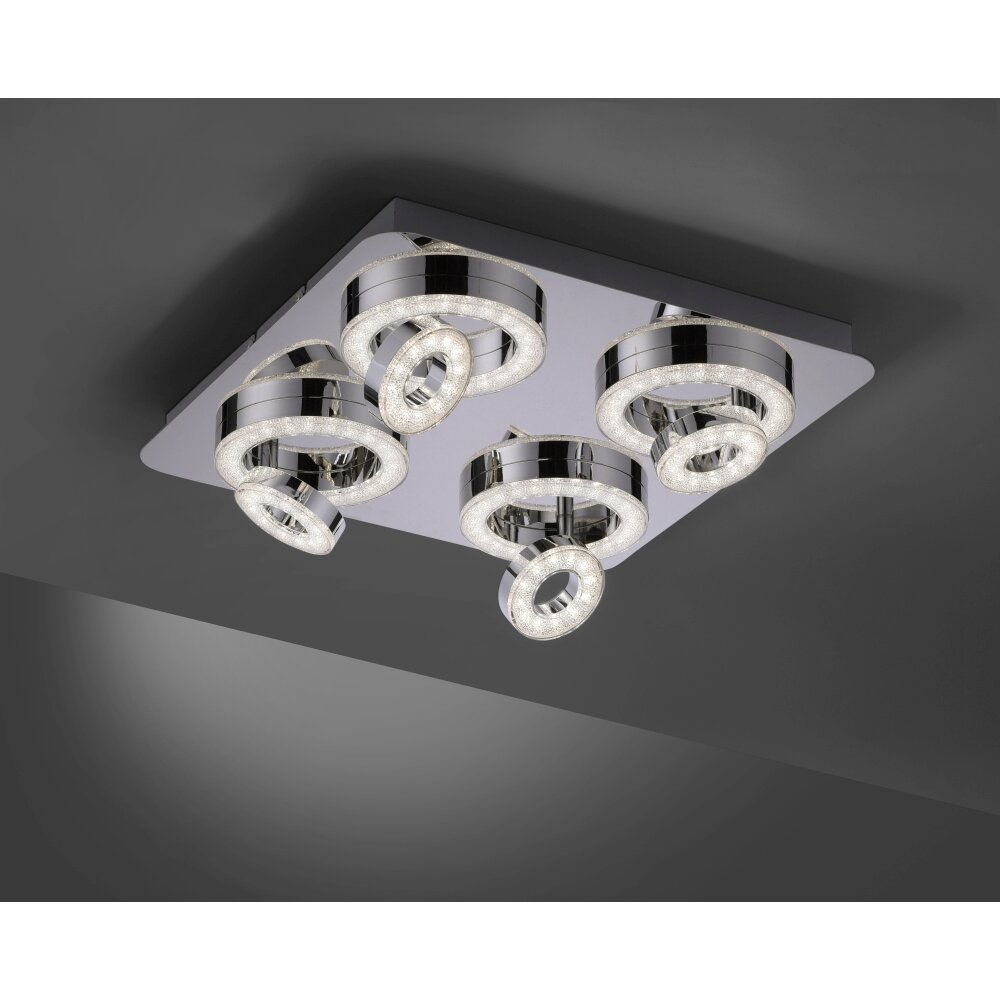Leuchten Direkt LS-TIM Ceiling Light LED chrome, 4-light sources, Remote control, Colour changer