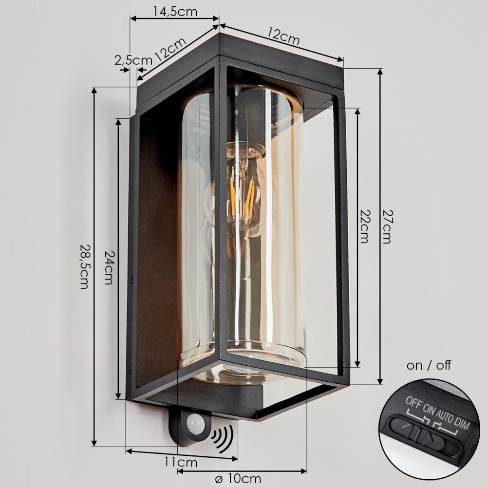 Palanga Outdoor Wall Light black, 1-light source, Motion sensor