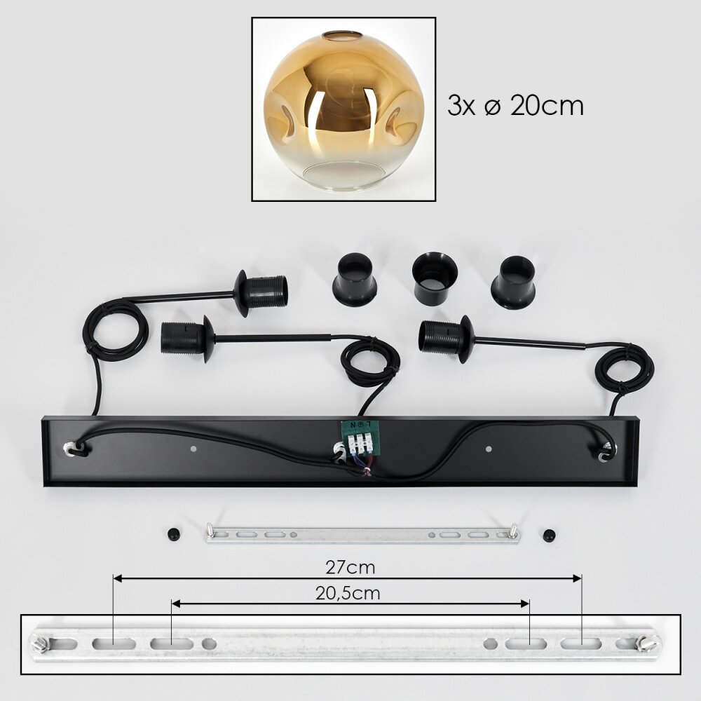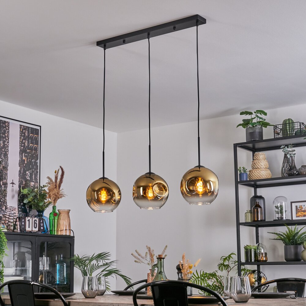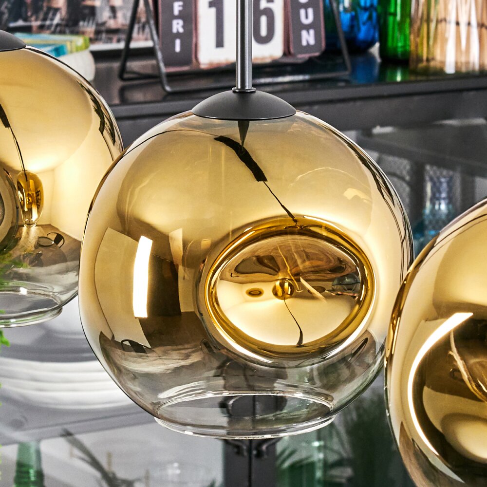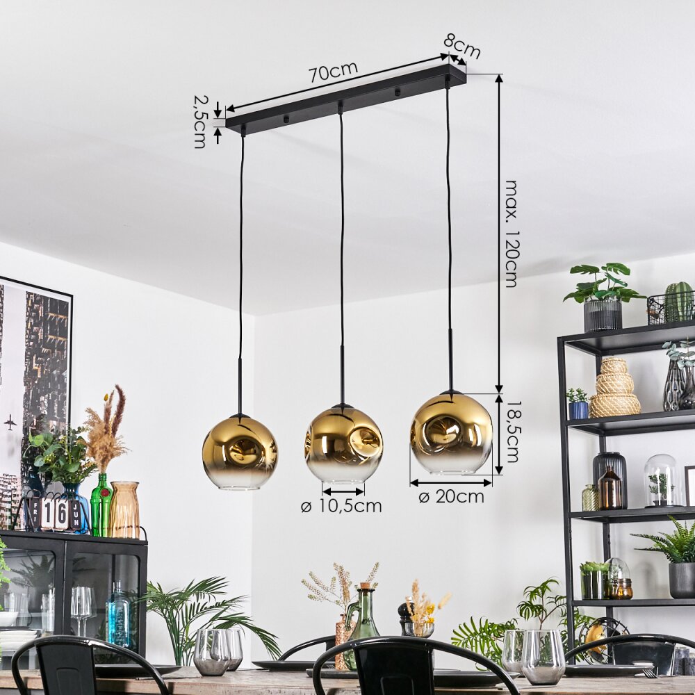 Ripoll hanging light, globe light, pendant light gold, clear, 3-light sources