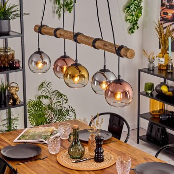 Gastor hanging light, globe light, pendant light Amber, gold, clear, Smoke-coloured, 6-light sources