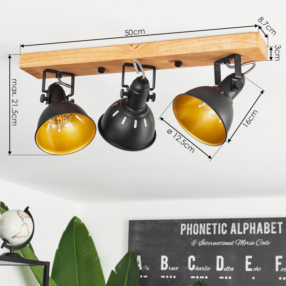 Tina Ceiling Light chrome, Light wood, black, 3-light sources
