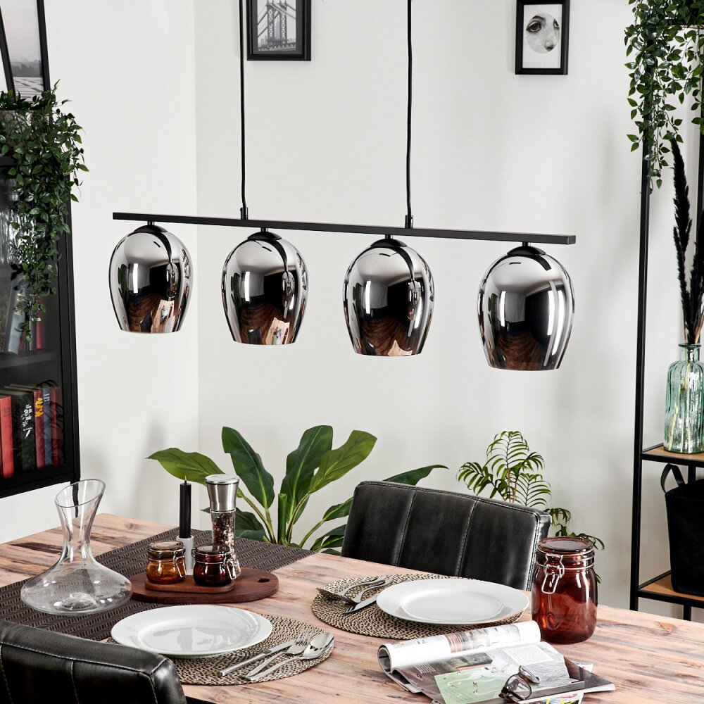 Vevino Pendant Light glass 15cm chrome, Smoke-coloured, 4-light sources