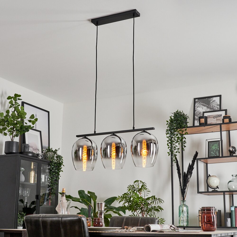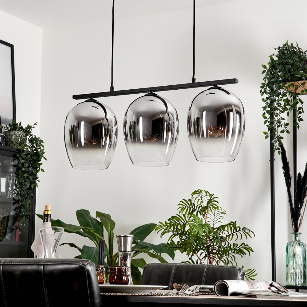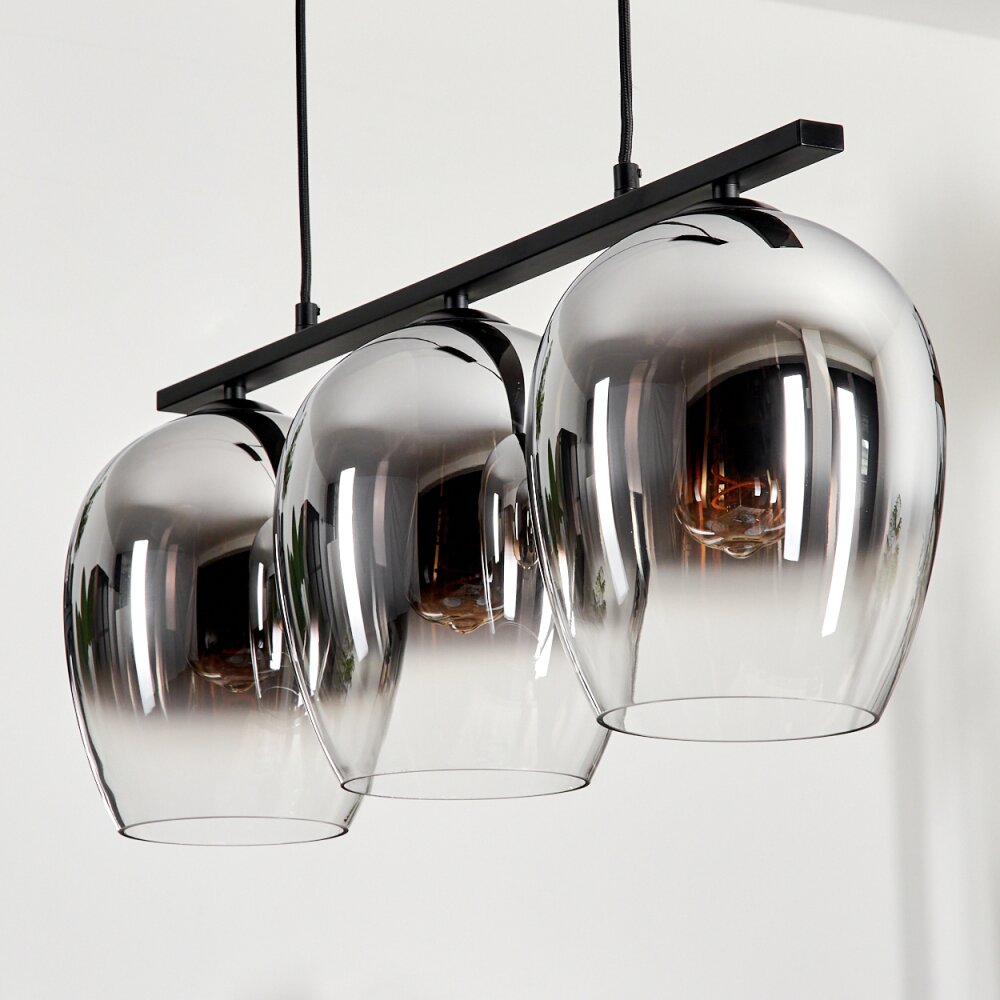 Vevino Pendant Light glass 20cm chrome, clear, Smoke-coloured, 3-light sources