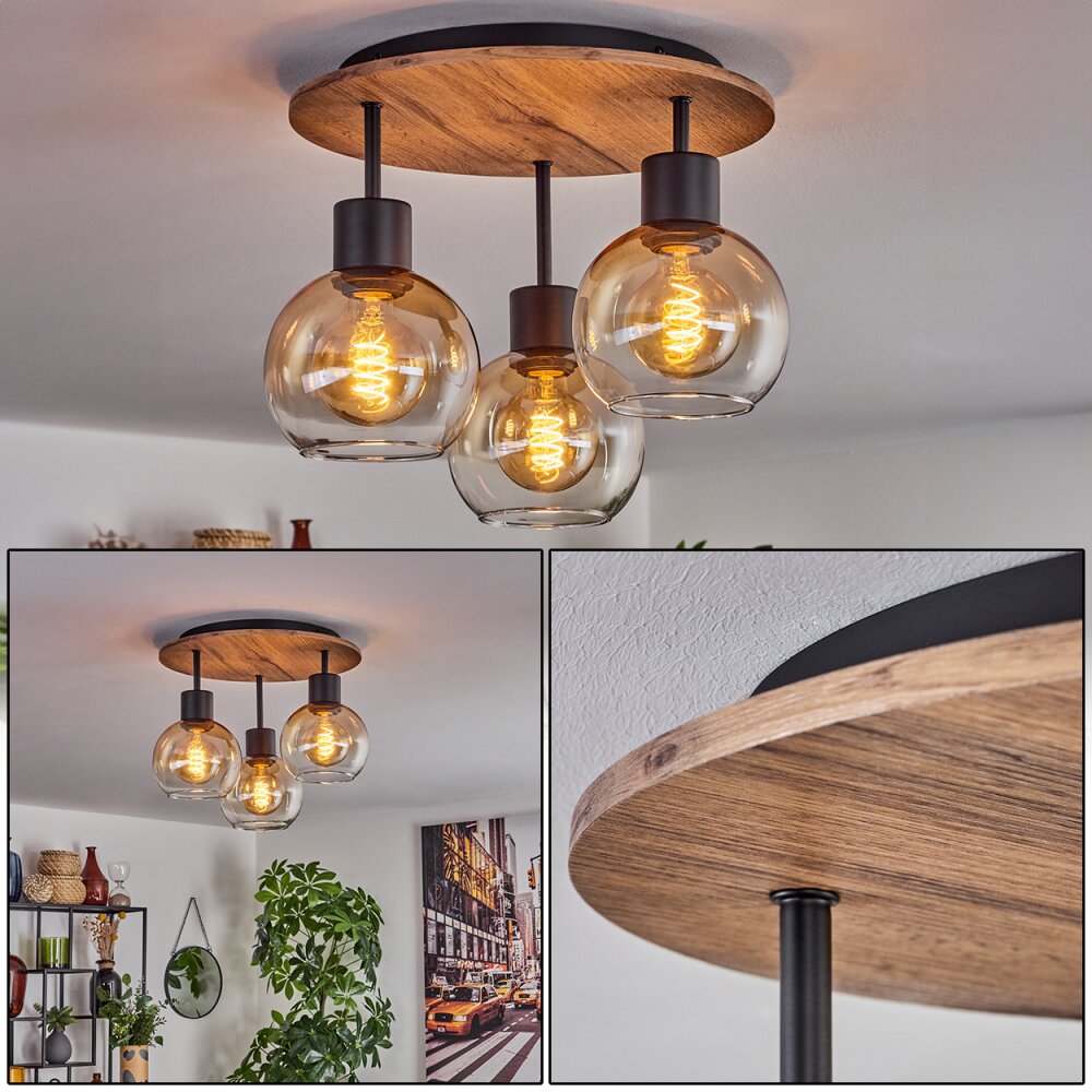 VOUHET Ceiling Light brown, Wood like finish, black, 3-light sources